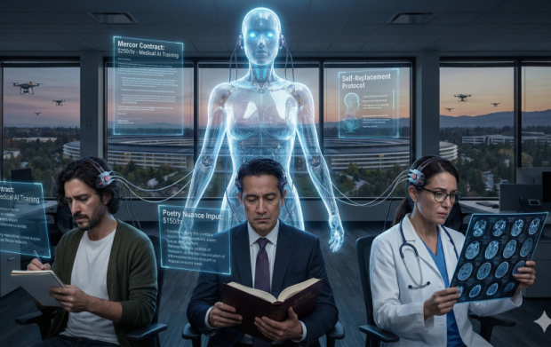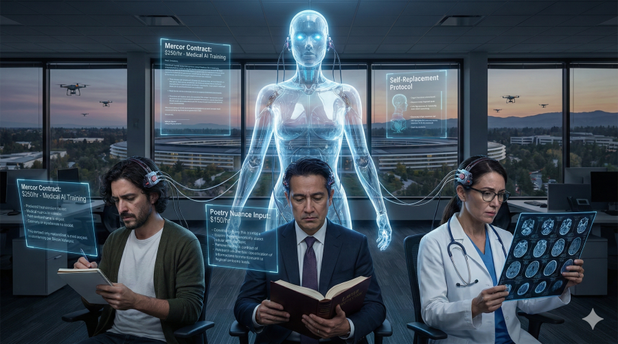 시인은 AI에게 더 감동적인 은유를 가르치고, 변호사는 더 정교한 법률 논리를 주입합니다. 공상과학 소설의 한 장면이 아닙니다. 2026년 1월, 실리콘밸리 일대에서 벌어지는 노동시장의 ‘웃픈’ 현실입니다.